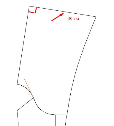 - Продолжить прямой горловину полочки на длину горловины спинки, на 9,5 см.