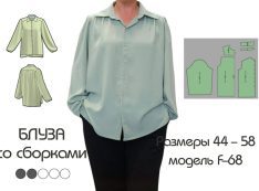 Добрый день. Выкройка блузы прямого покроя со сборками под кокеткой. Сборка и спереди и на спинке. Рост 165–170 см, размеры 44 — 58. Сборки под кокеткой на переде, спинке…