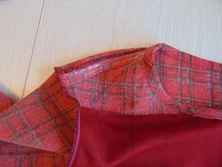 У меня ткань очень тонкая, прозрачная. Я поставила сетку подкладом. Плюс ткань тянется, поэтому плечевой шов укрепила долевиком. Но это делать не обязательно, только на трикотаже.