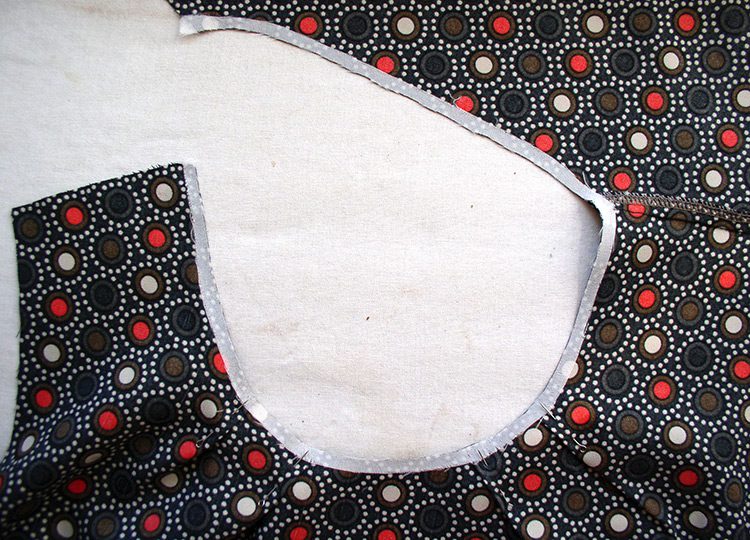 Один из способов обработки срезов вырезов и пройм — это обработка косой бейкой. Такой способ очень хорошо подходит для тонких тканей: кружевных, хлопковых, батистовых и прочих.