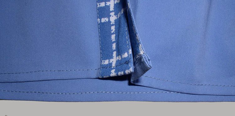 Низ рубашки подгибаю на 5 мм, заутюживаю. Потом подворачиваю еще на 5 мм, заутюживаю и прокладываю строчку. Получился шов вподгибку с закрытым срезом.